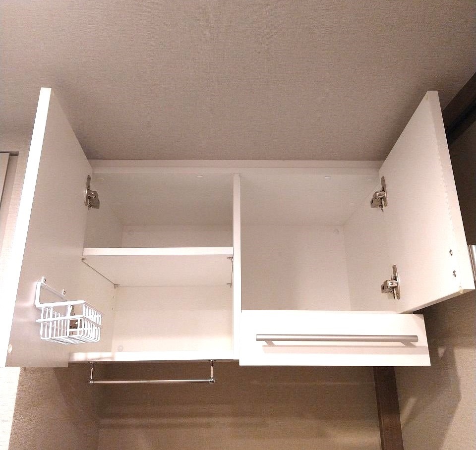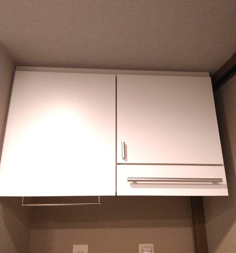 【特 徴】 モデルルームでディスプレイされていた、落ち着いた艶消しホワイトの吊戸棚です。