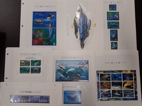 1004F60 外国切手 世界の魚 クジラ イルカ ノーフォーク 中国 モンゴル タイなど 1冊まとめ*詳細は写真参照