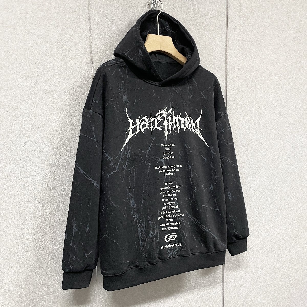 Product name: パーカー イタリア製造 コットン100% 裏起毛 保温 ソフト 快適 総柄 英字柄 ダメージ加工 カットソー フーディ ストリート 通勤 SIZE:M