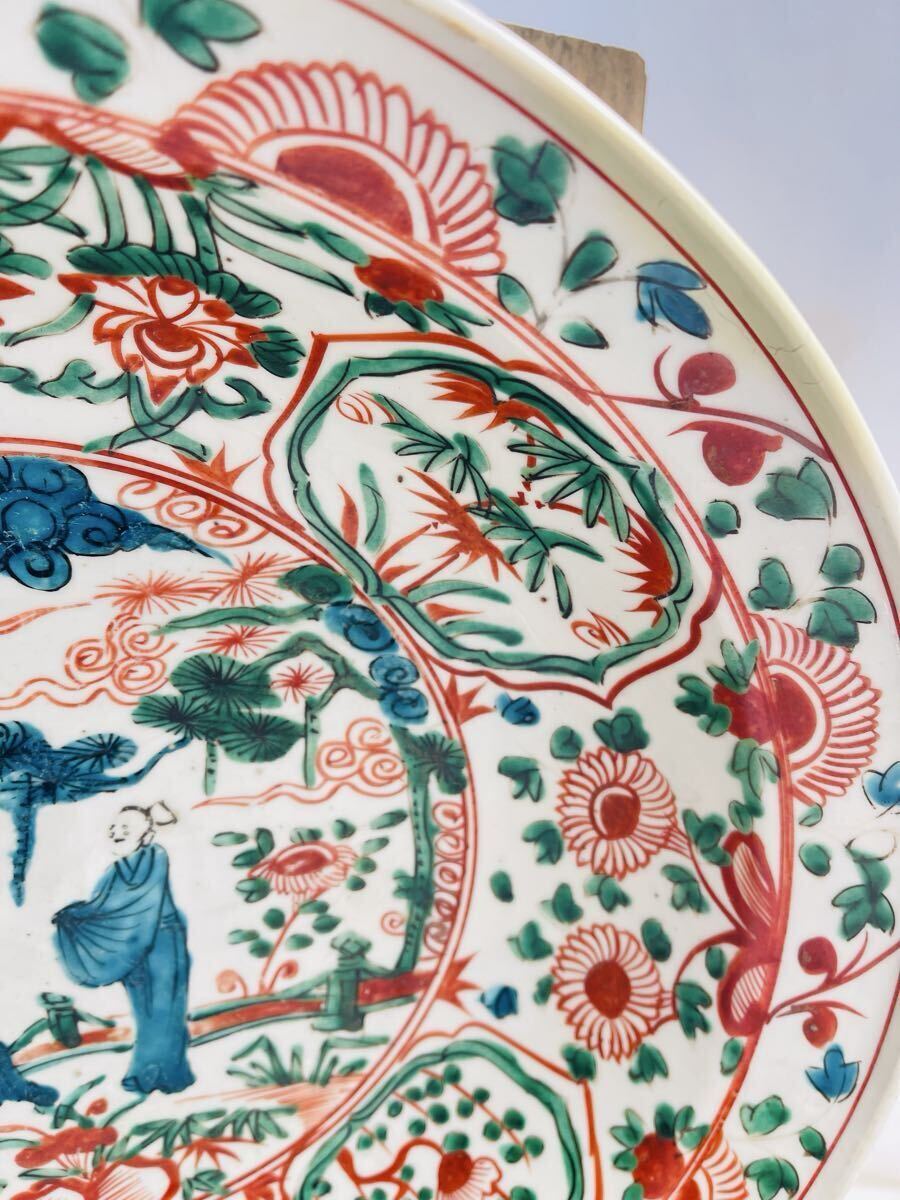 【B250】色繪 人物圖 大皿 共箱付 色絵 お皿 飾り皿 賞盤 賞物 置物 古陶磁器 インテリア 時代物 中国古美術