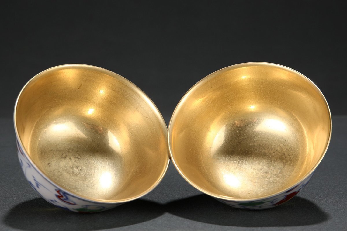 Product name: 【安】明時代 大明成化年製 斗彩嬰戯図内塗金杯一対 共箱 唐瓷 古陶瓷 中国古美術 古董品 411
