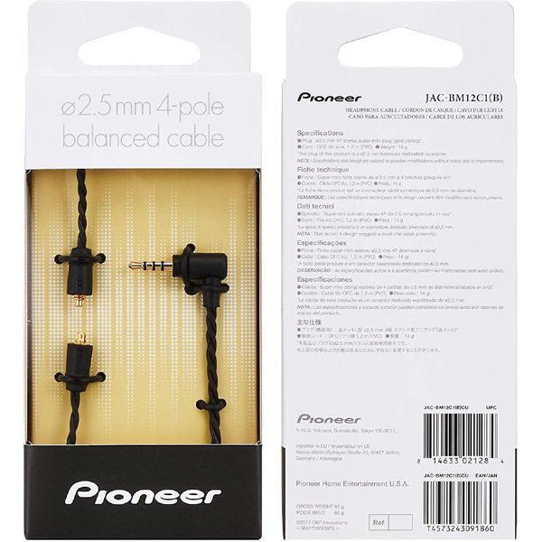 パイオニア ヘッドホンケーブル φ2.5mmL型4極バランスプラグ JAC-BM12C1(B) 10点