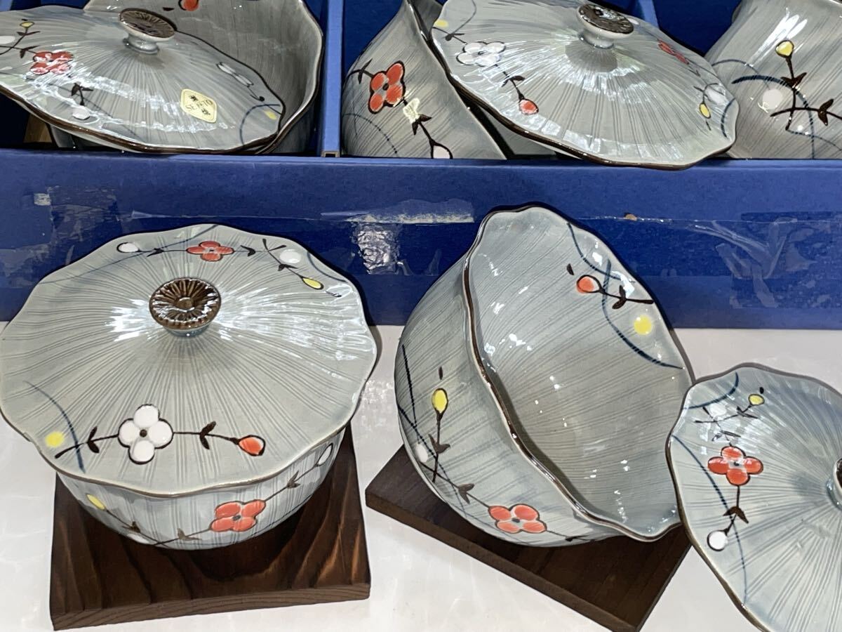 Product name: 瀬戸焼◆茶碗蒸し 蓋付き小鉢 台座付き 5客揃◆花ごよみ 五通り揃 翠泉 茶碗蒸し 和食器 陶器 未使用