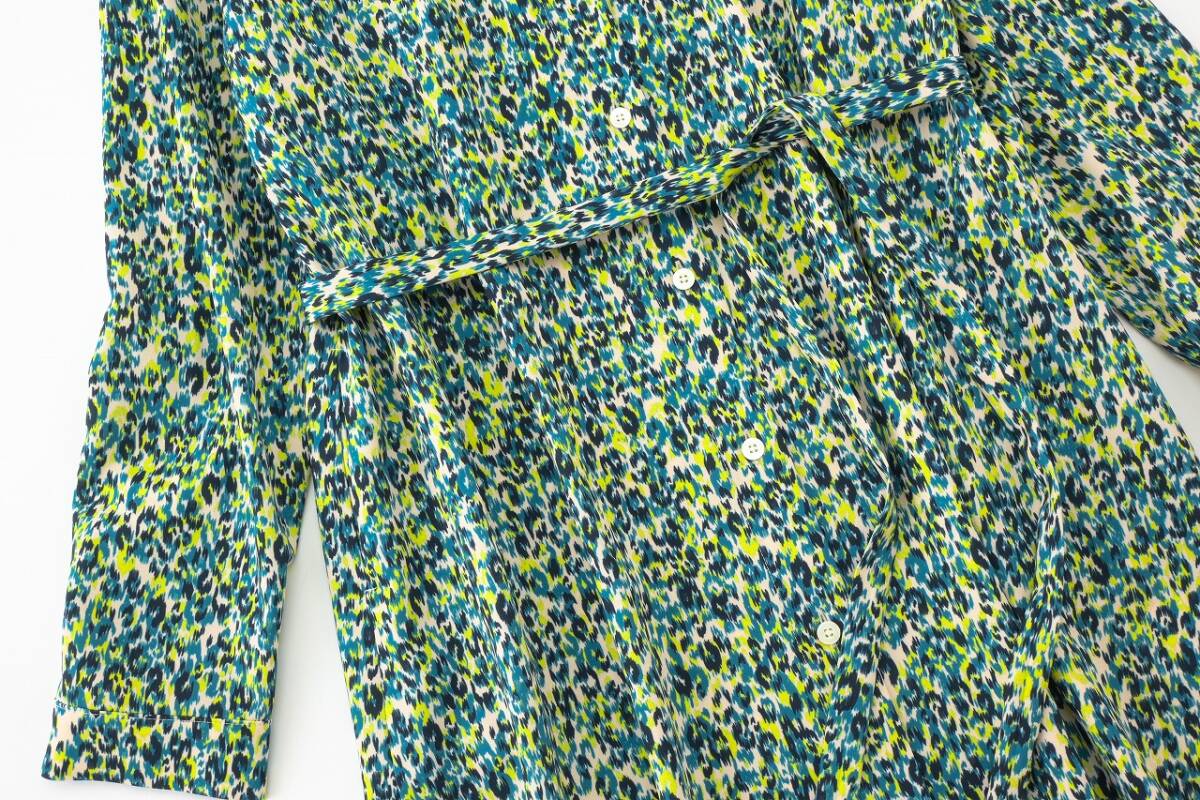 ウエストのリボンベルトがアクセントになり、自然なメリハリを演出。