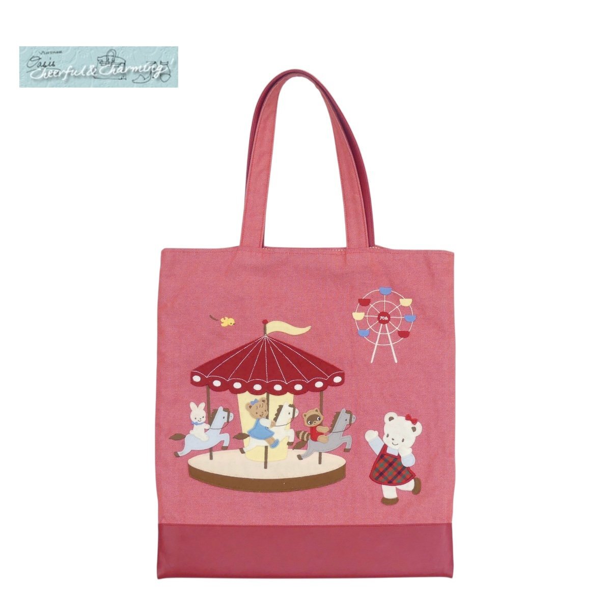 Product name: familiar 70周年VIP限定デニムバッグ レッド コットン×合成皮革 B++