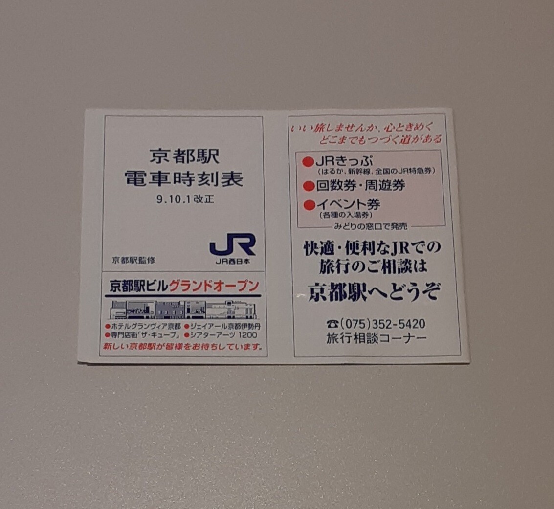 平成9年 10月 1日 改正 JR 京都駅 電車時刻表 レトロ 雑貨 資料 コレクション 西日本 鉄道