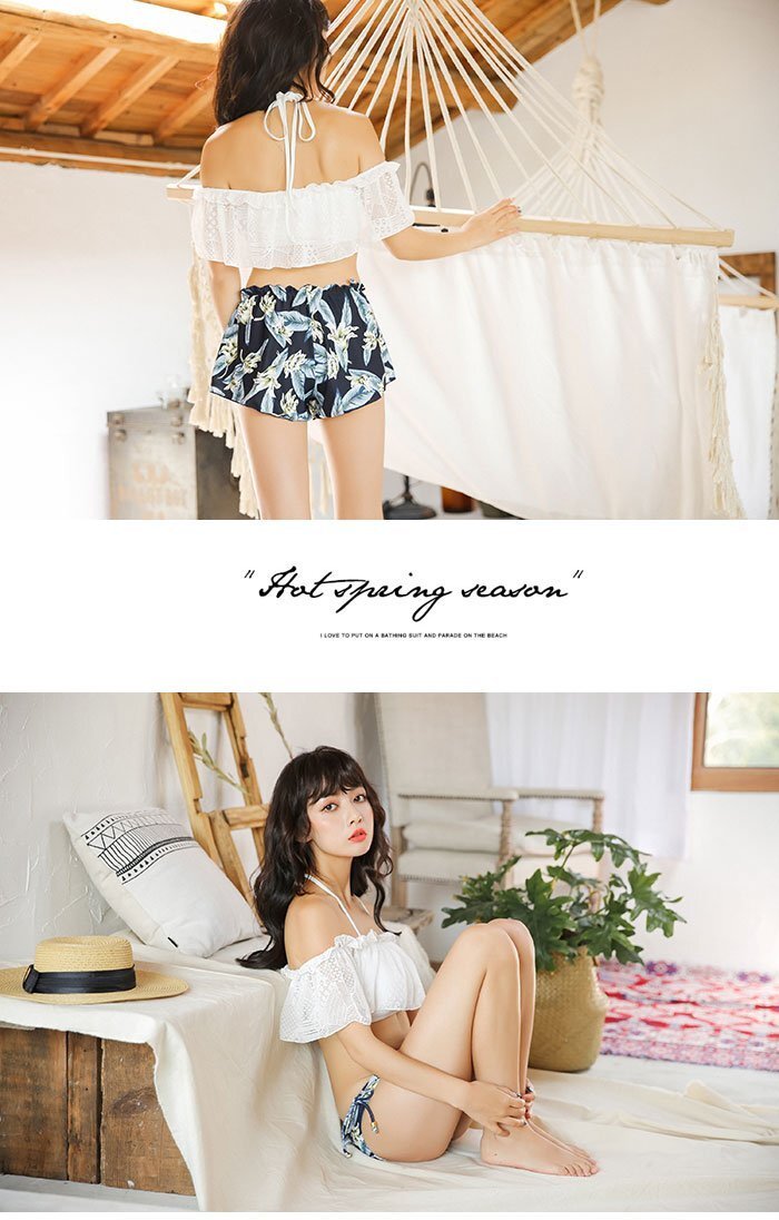 Product name: 水着 ブラック ホワイト 3点セット リーフ柄 オフ ショルトップス レース ビキニ プリント 20代 30代 40代 ホワイト XLサイズ(13号)