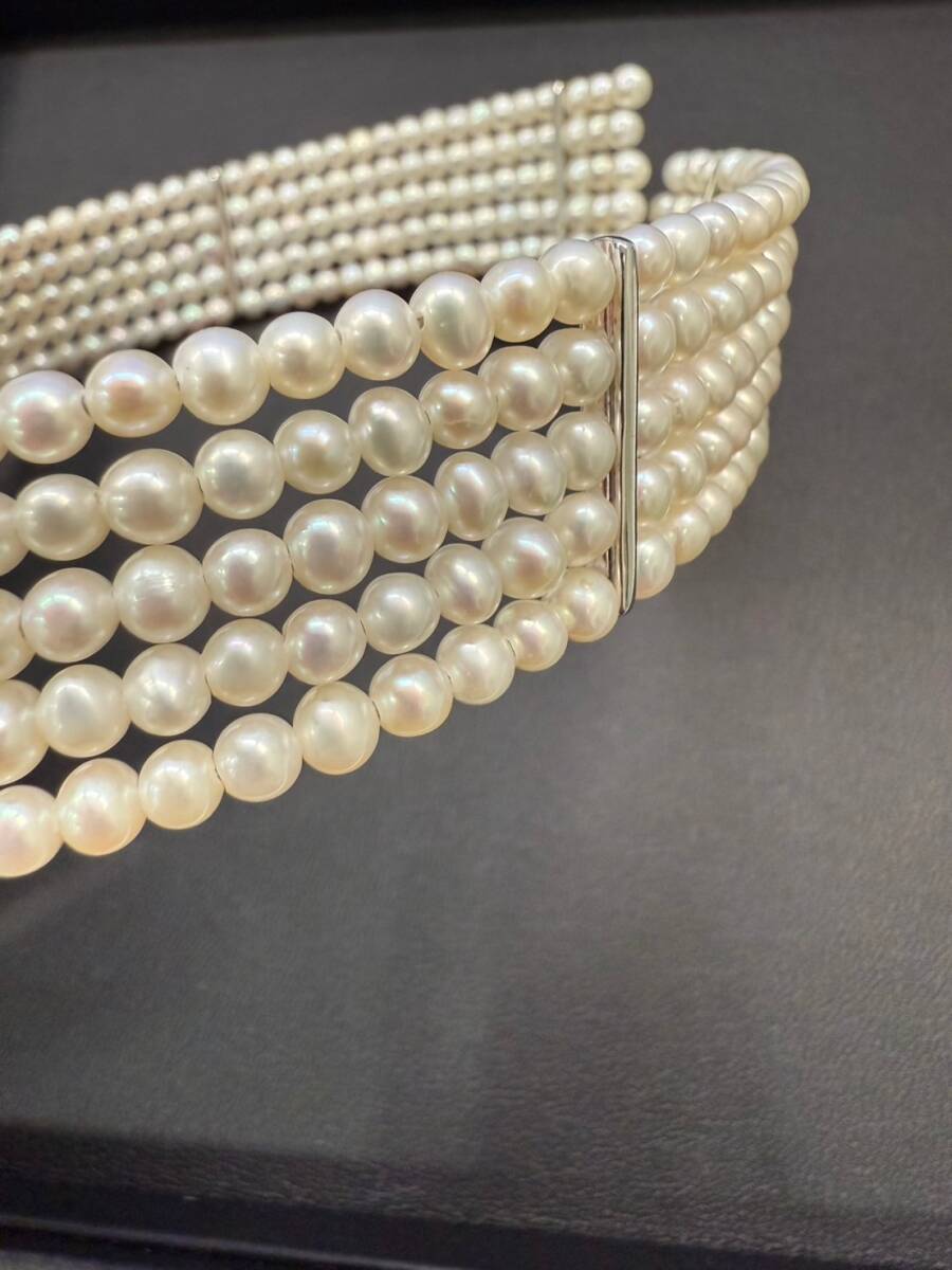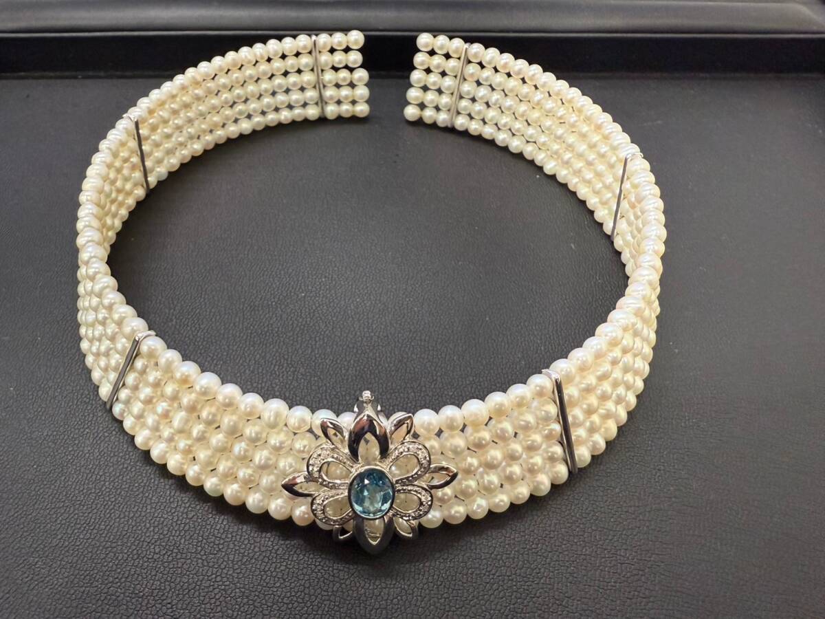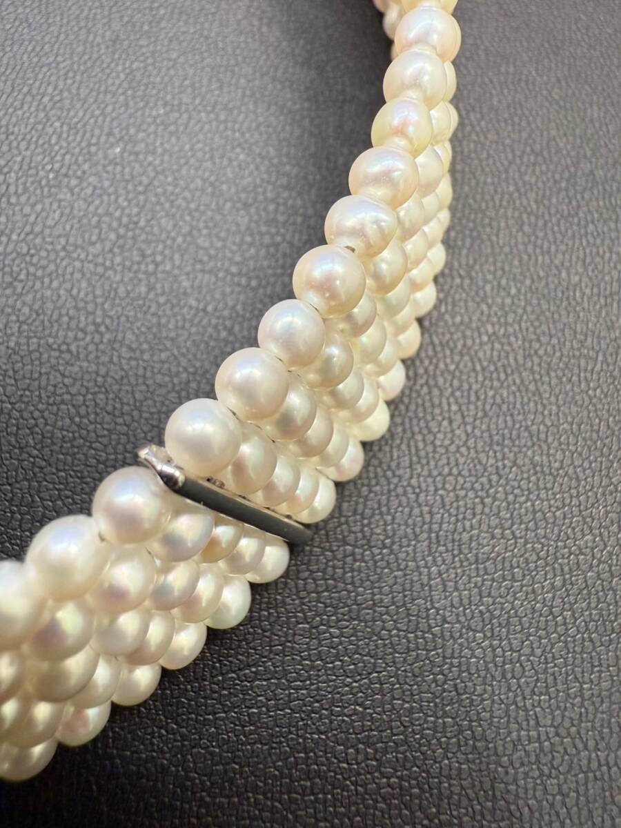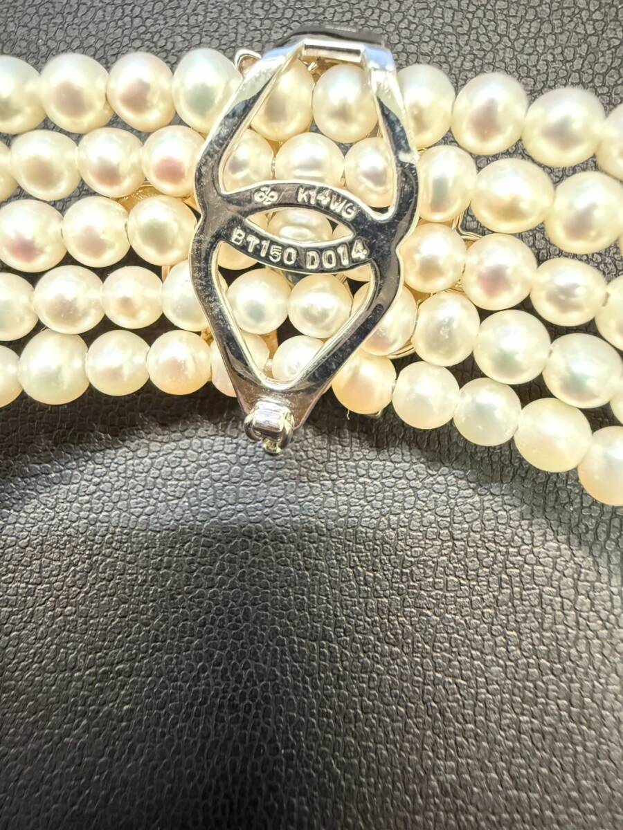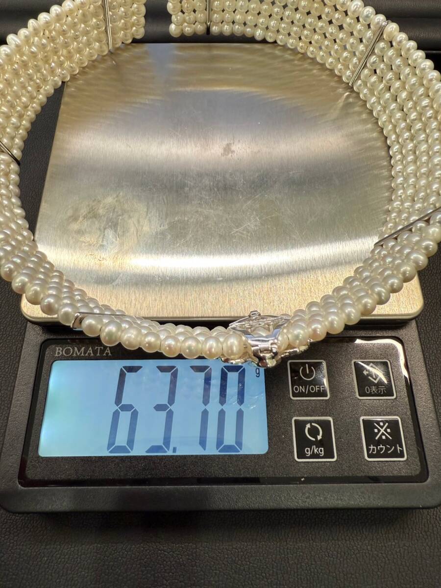 商品名K14WG ベビーパール 3.8mm~4.5mm 5連ネックレス チョーカー 63.7g BT1.5ct MD0.14ct 中古品