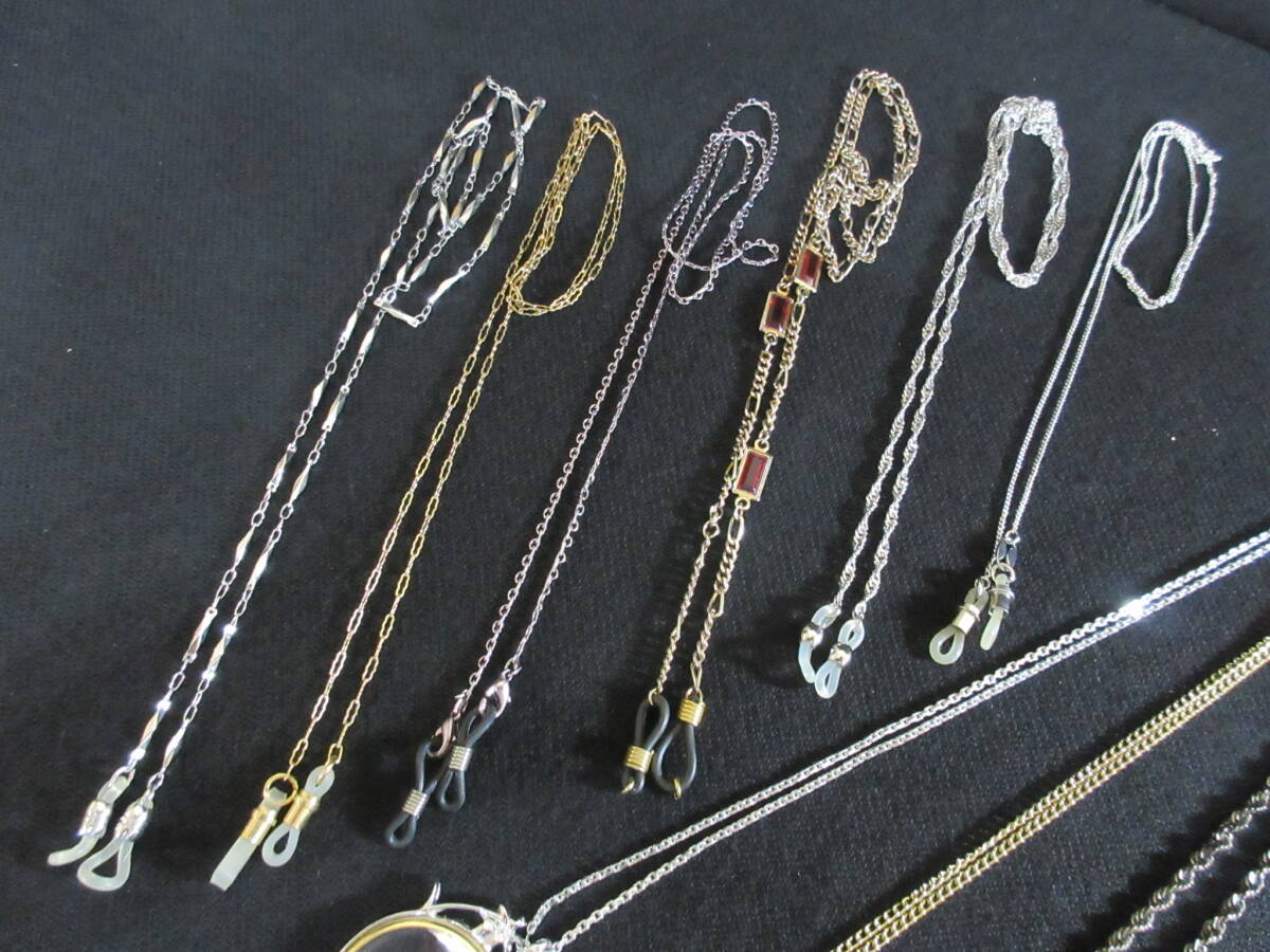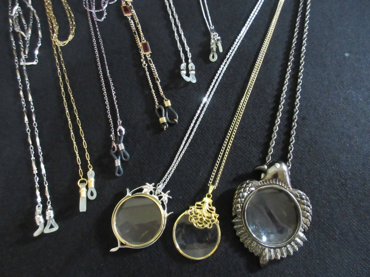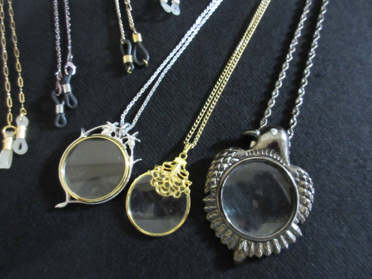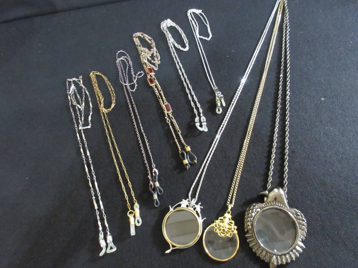 *100円~【眼鏡/拡大鏡】ゴールド・シルバーカラーチェーン ペンダント型ルーペ3点 メガネチェーン6点 9点セット*M-16