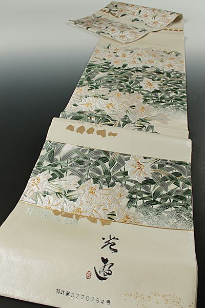 和遊館 OFK2209 西陣 浅山織物 真珠 本金箔 袋帯 花遊 百合