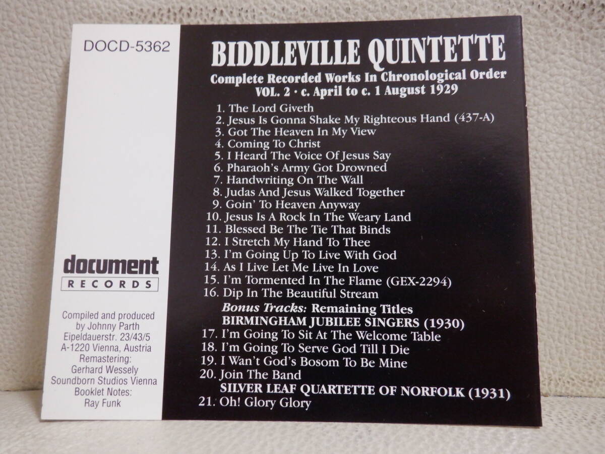 Product name: [CD] BIDDLEVILLE QUINTETTE / VOL.2 - BIRMINGHAM JUBILEE SINGERS, SILVER LEAF QUARTETTE OF NORFOLK (ボーナストラック入り)