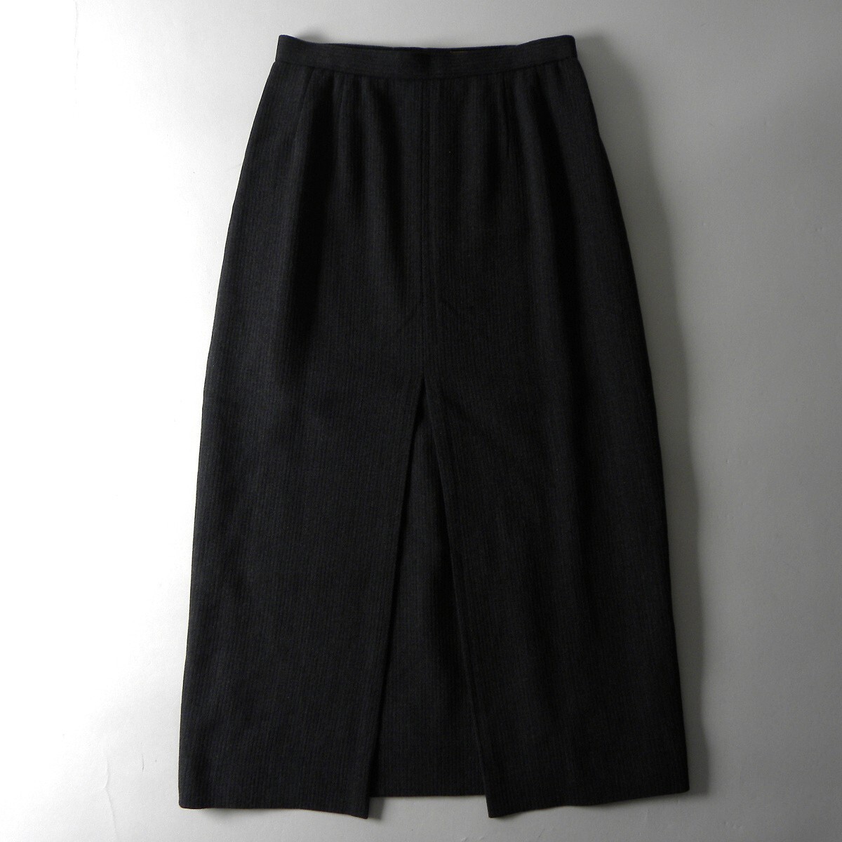 Product name: レリアン Leilian ゴールドタグ ストライプスリット入スカート ひざ下丈 キュプラ裏地 ストレッチ 9 グレー 日本製 l1124-13