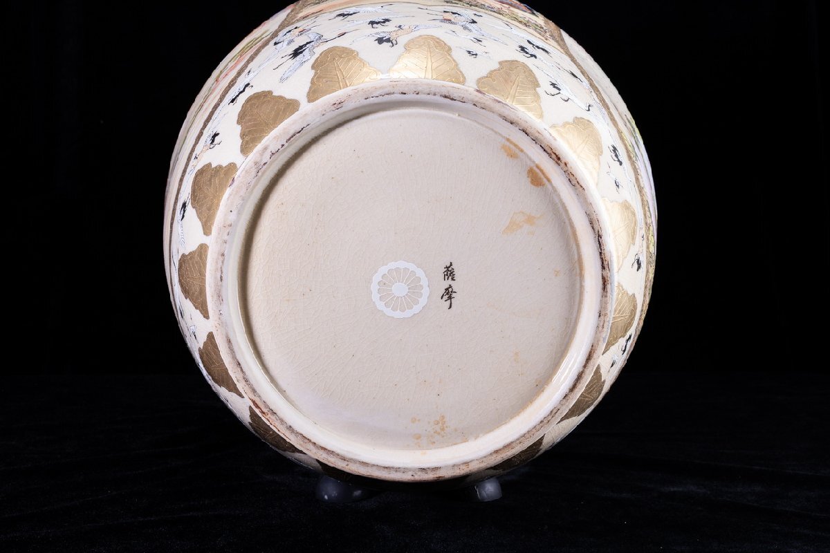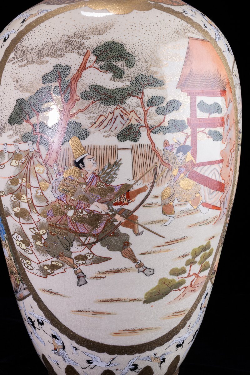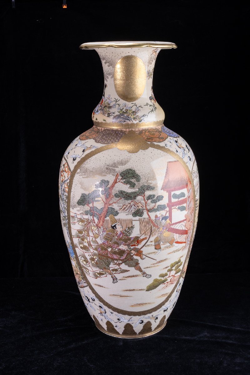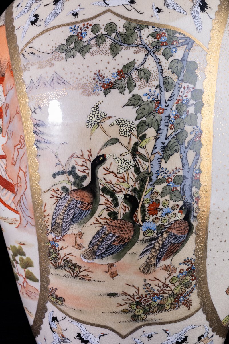 Product name: 【珍品堂】1円から M97-V170 薩摩焼 金彩 江戸時代 人物文瓶 武者 鶴 風景画 高86㎝ 飾壷 大花瓶 花器 工芸品 置物 骨董品 古美術 時代物