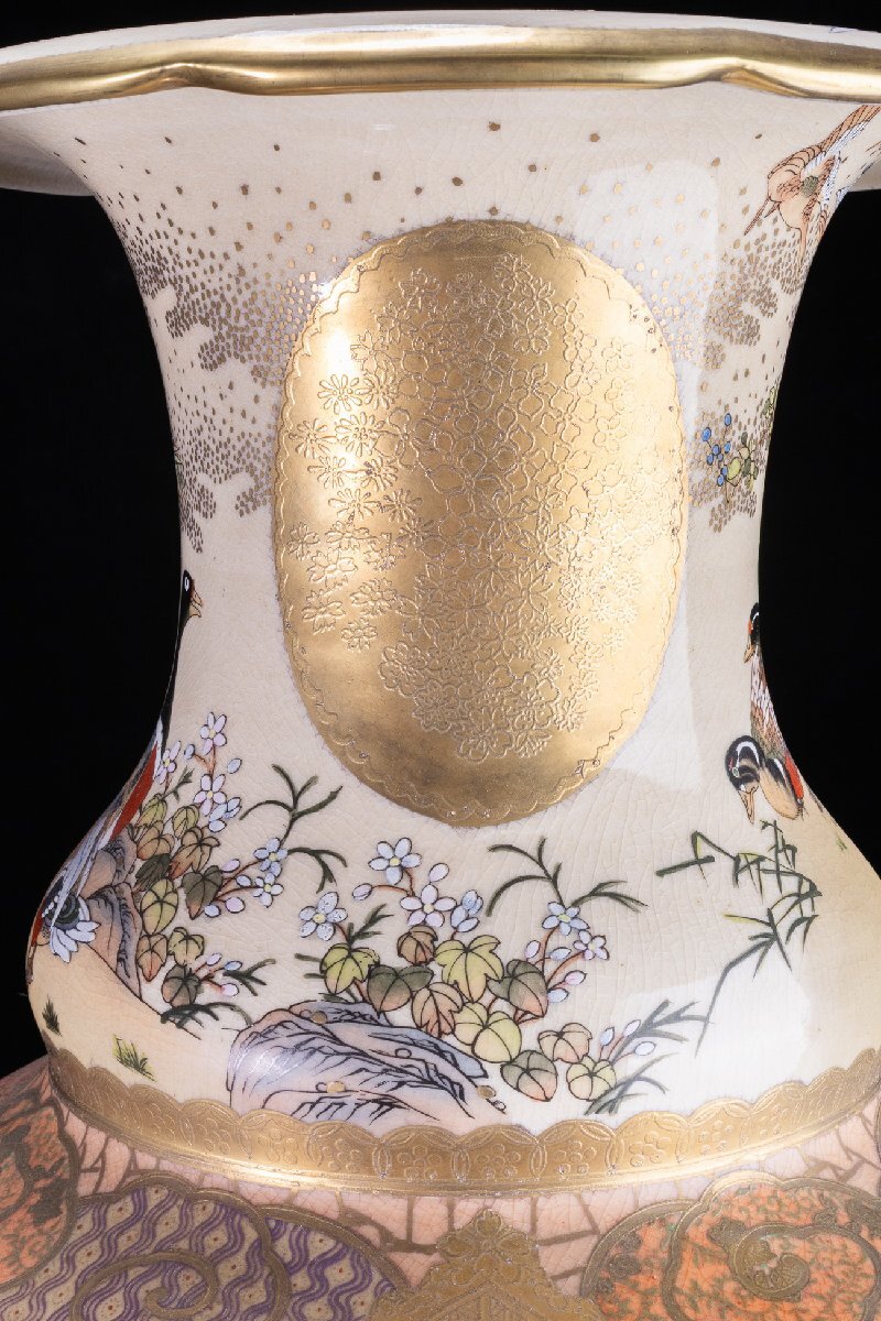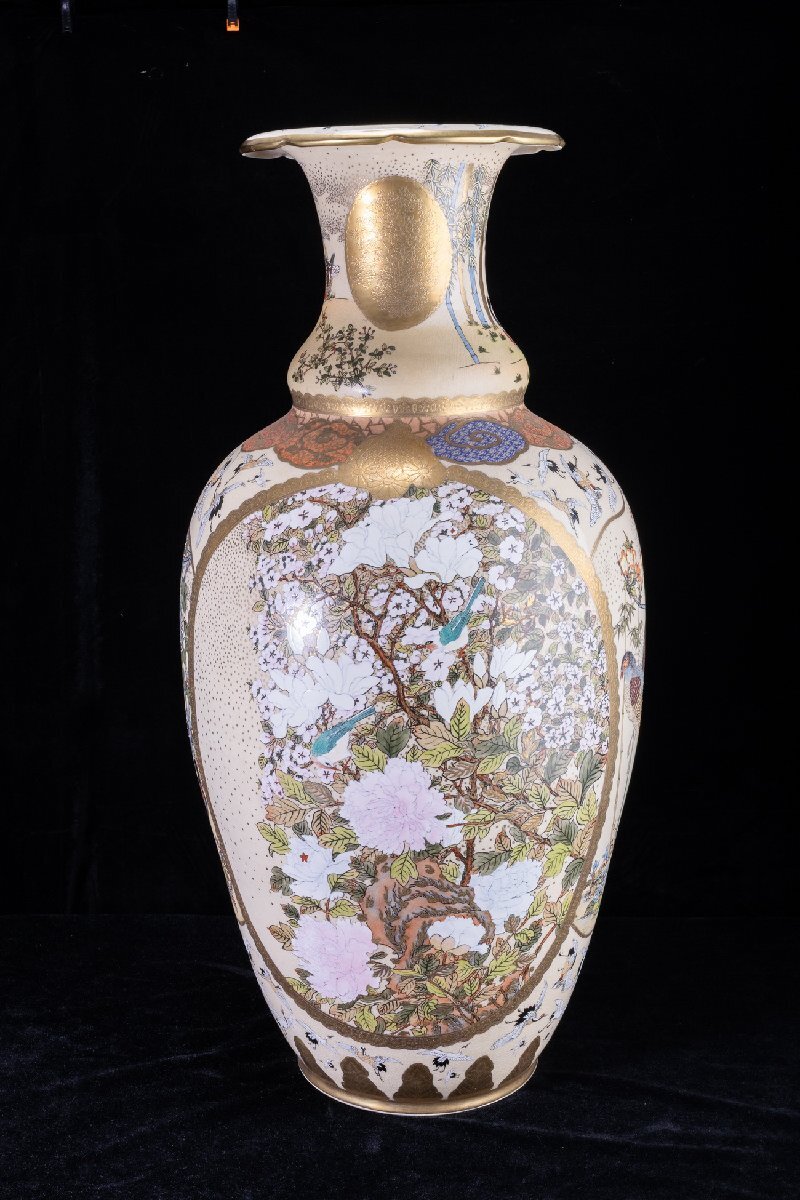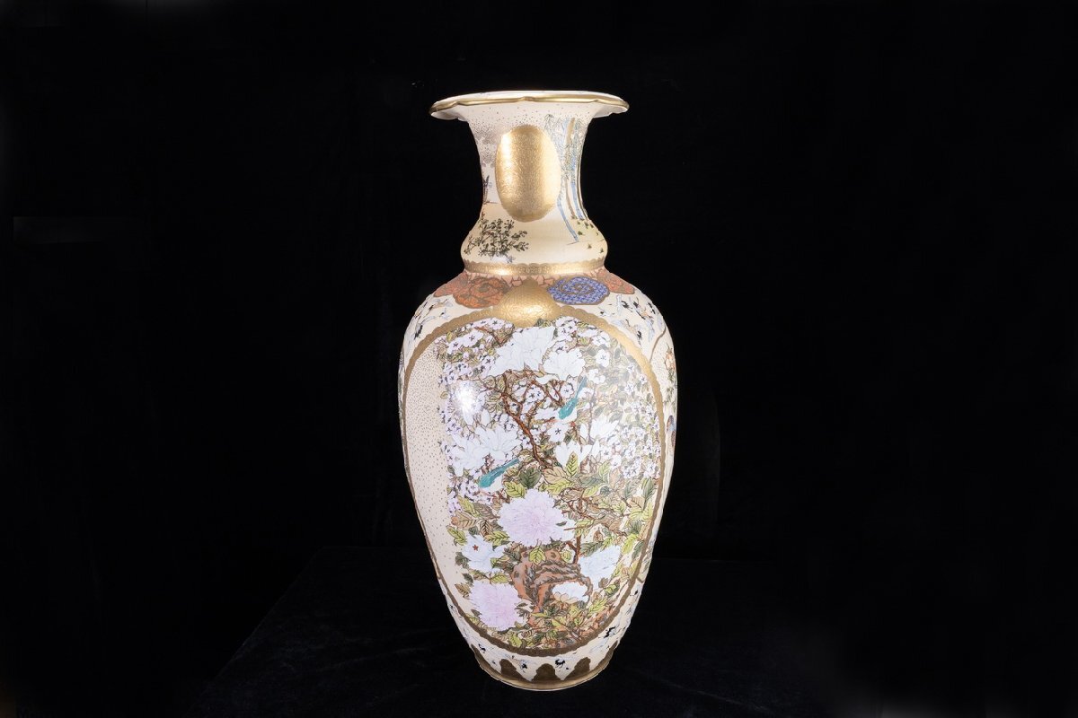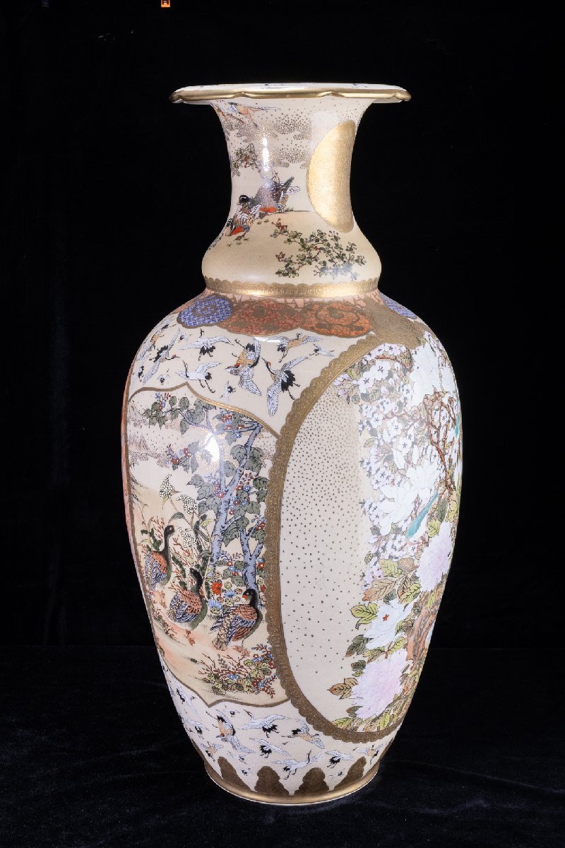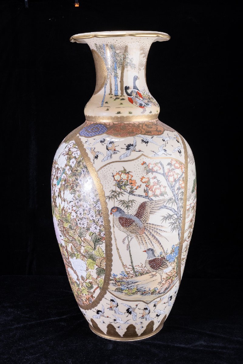 Product name: 【珍品堂】1円から M97-V170 薩摩焼 金彩 江戸時代 人物文瓶 武者 鶴 風景画 高86㎝ 飾壷 大花瓶 花器 工芸品 置物 骨董品 古美術 時代物