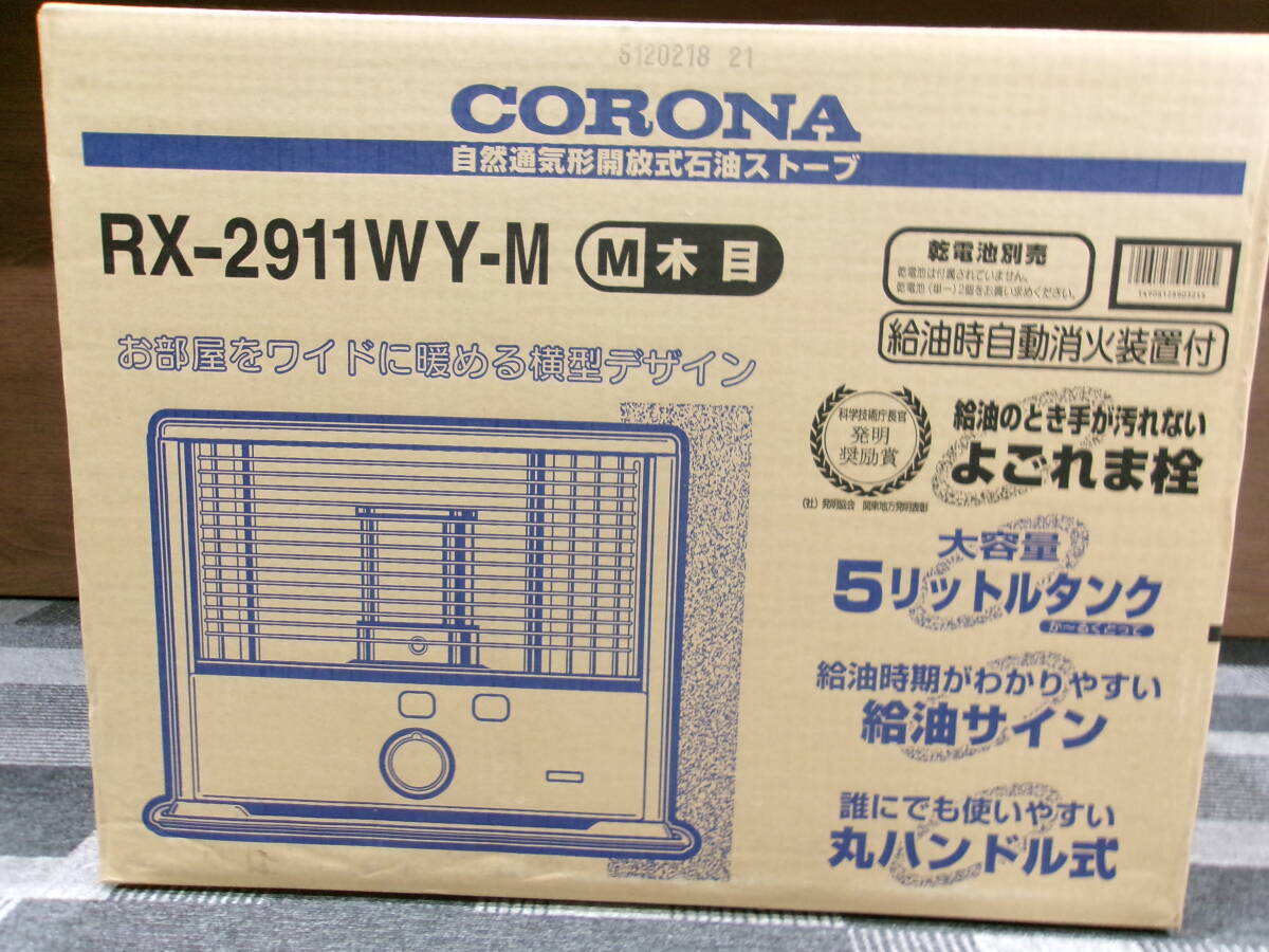 Product name: CORONA コロナ 自然通気形開放式 石油ストーブ RX-2911WY-M 木目 木造 8畳 コンクリート 10畳 よごれま栓 未使用未開封品 激安 1円スタート