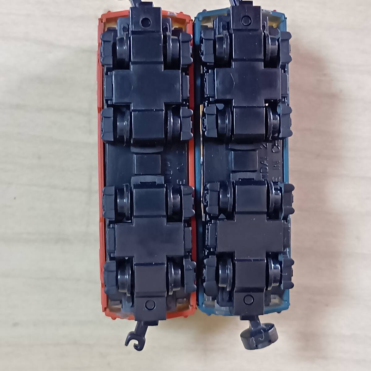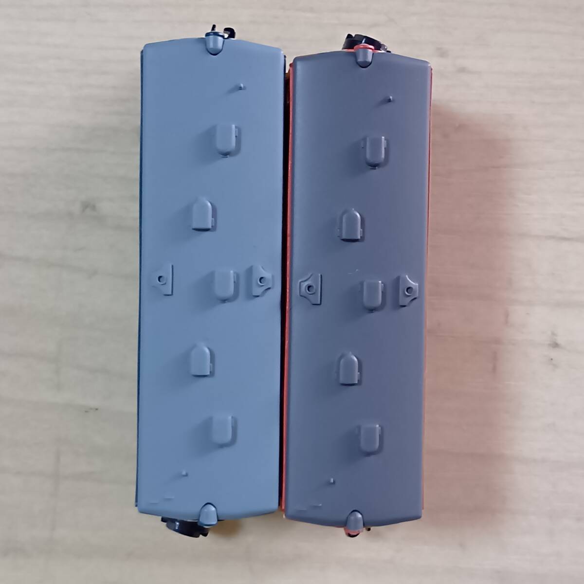写真のもの送ります。きれいなものもあれば、塗装はげ、色付き、傷、欠品、壊れている(ボディー割れ、スカート割れ他)ものもあります。組間違いや他車部品(妻、レリーフ、パンタグラフ、スカート他)が使われている場合もあります。それらが、ついていない車両もあります。