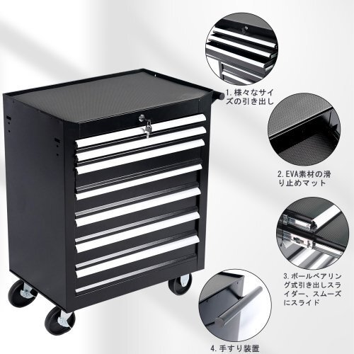 Product name: ローラーキャビネット 7段 ロールキャビネット ツールキャビネット ツールボックス 大型キャスター ブラック 1.9