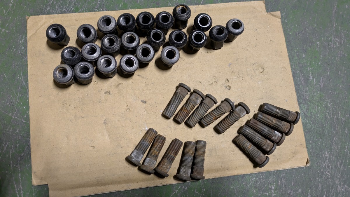 空冷ポルシェ用の、ホイールナット、スタッドボルト中古品です。見かけは悪いですがネジ山、座面は生きてます。