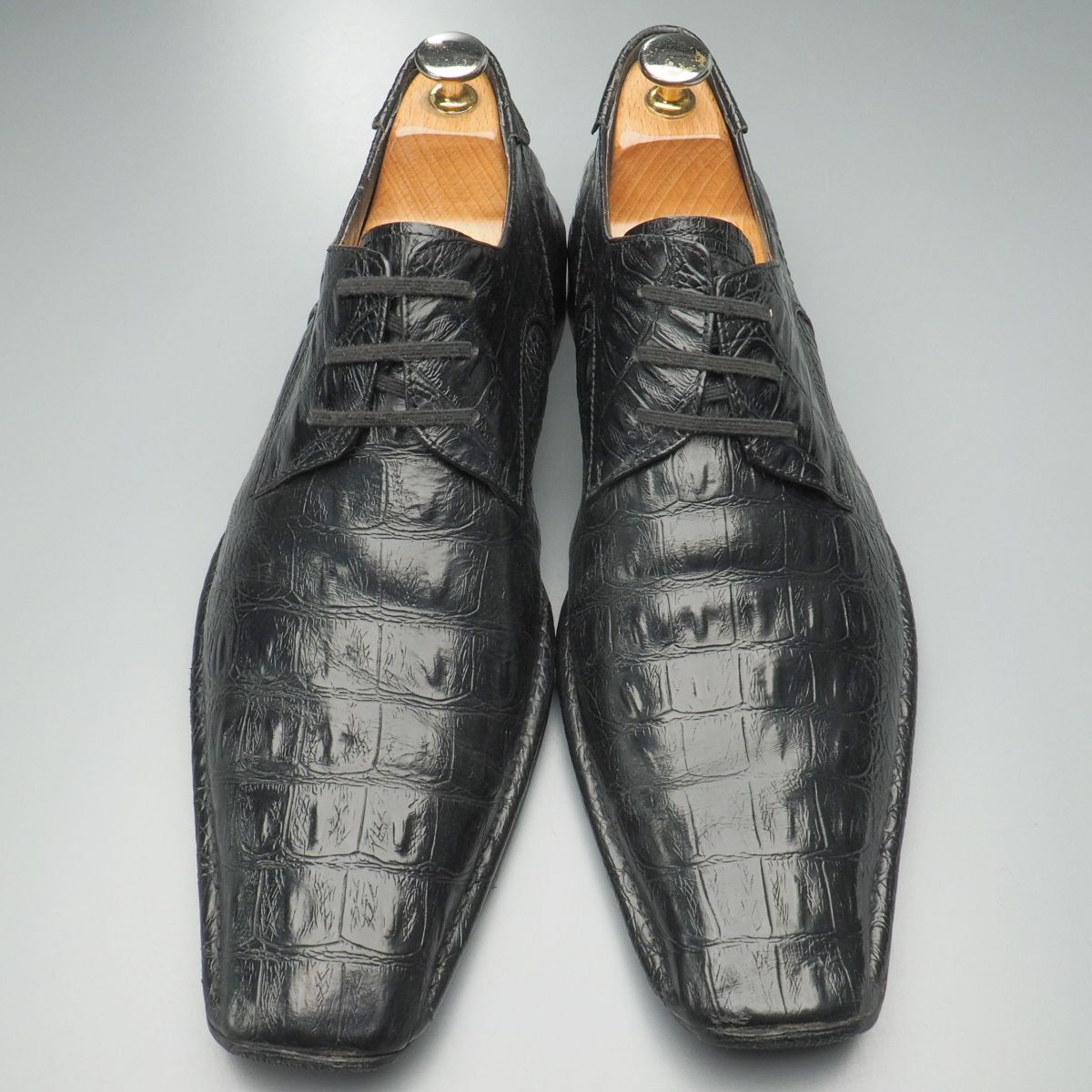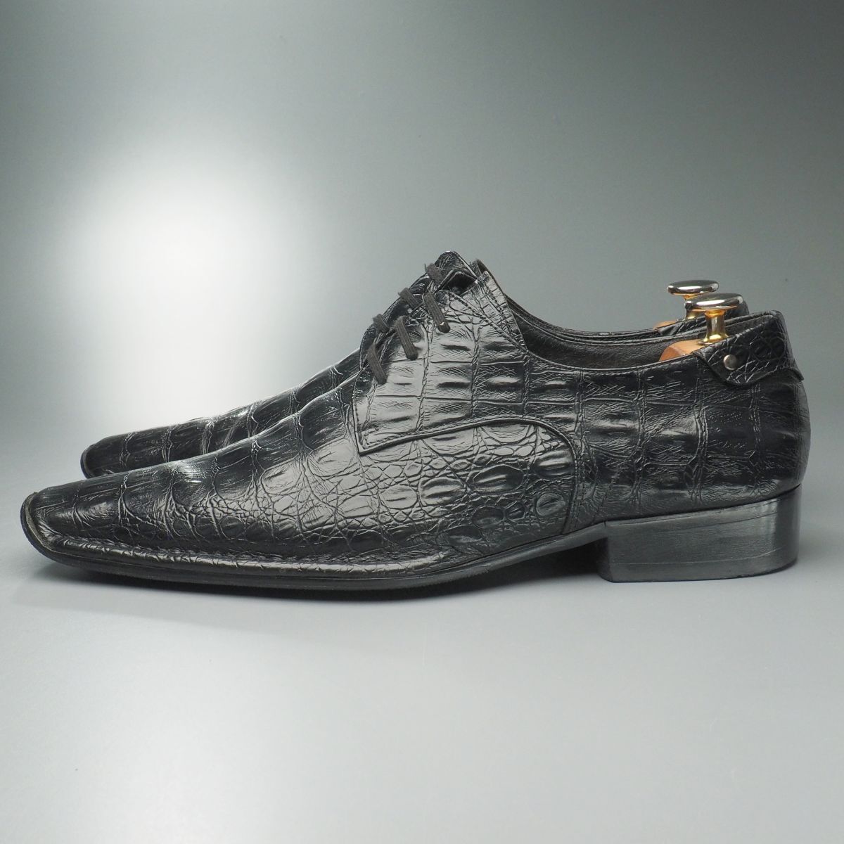 Product name: GS3723//*A Dungull*メンズ40/ワニ革型押し/プレーントゥ/レザーシューズ/革靴/黒/ブラック
