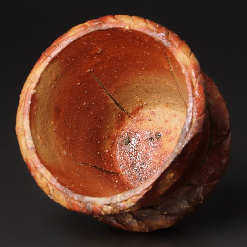 印象深い造形に揺らめくような焼きの色彩が美しいぐい呑です。