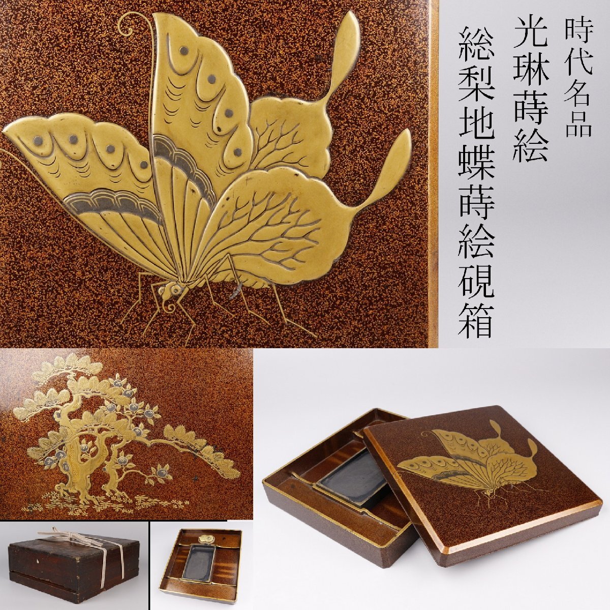 Product name: 【LIG】時代名品 光琳蒔絵 総梨地蝶蒔絵硯箱 書道具 古美術品 時代箱 旧家収蔵品 [.UW]25.10