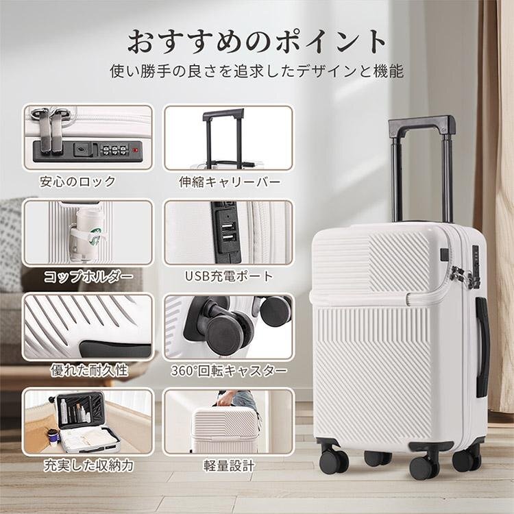 Product name: スーツケース 機内持ち込み 耐衝撃最強 キャリーケース キャリーバッグ 360°回転 ロック搭載 収納袋付き コップホルダー 2泊3日 shw0004.2