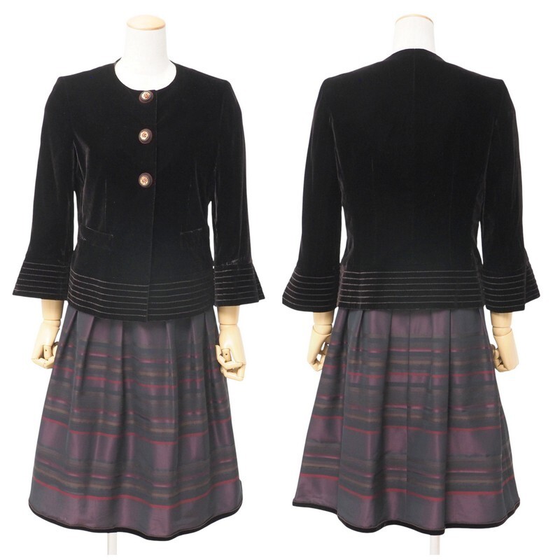 Product name: MI1931□ランバン コレクション/LANVIN COLLECTION セットアップ 7分袖 ベロア ジャケット + シルク混 ノースリーブ ワンピ―ス サイズ38