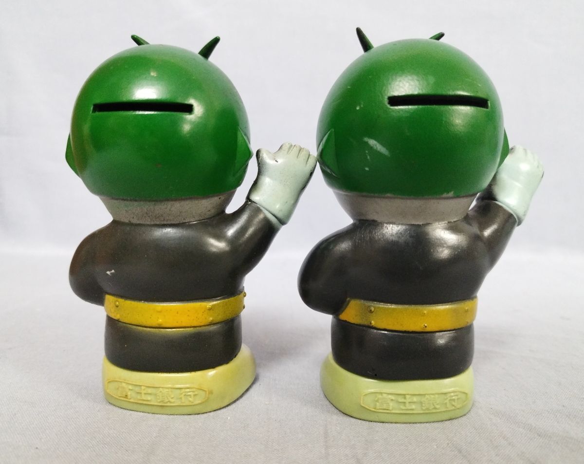 『【非売品】富士銀行 仮面ライダー貯金箱 計2点 ソフビ ノベルティ 昭和レトロ ビンテージ アンティーク』
