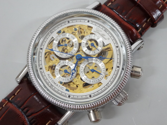 クロノグラフ 自動巻きメンズ裏スケ腕時計