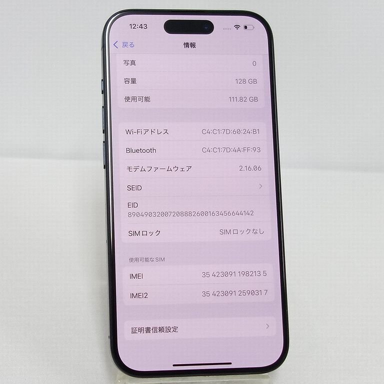 Product name: *60日保証* SIMフリー iPhone 15 Pro 128GB デモ機 3M437J/A バッテリー93% 充電116回 au 利用制限○ インボイス可【SH1101-570-1106東】清