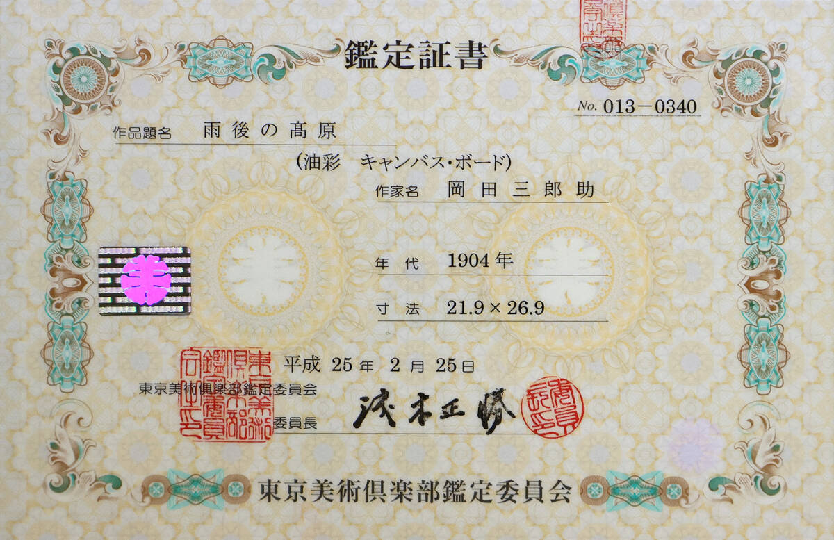 ■本作には東京美術倶楽部鑑定証が付いています。東京美術倶楽部の鑑定証代は6万円(鑑定代3万円+証書代3万円)かかかりますが、本作にはすでに鑑定証は付いておりますので、別途費用等は頂きません。