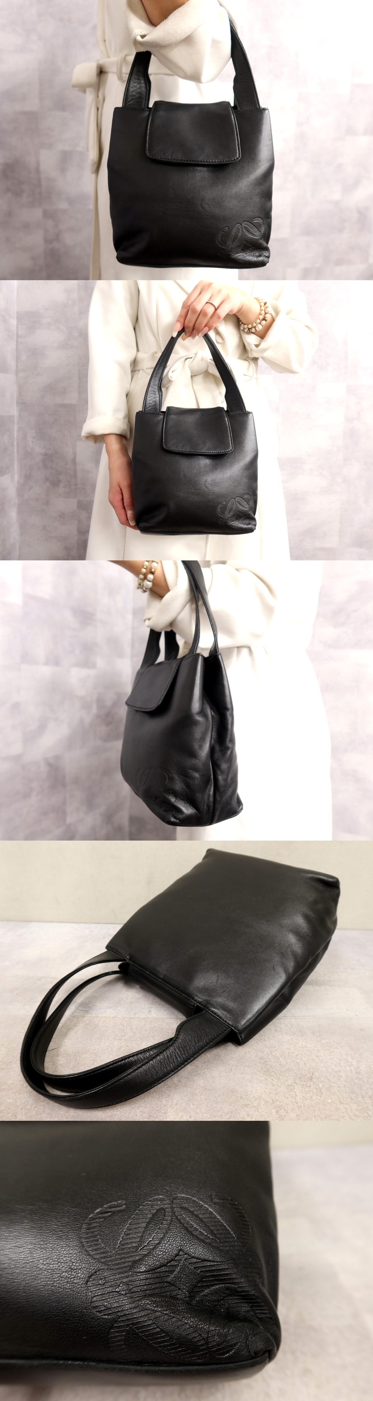 Product name: ●超美品●LOEWE ロエベ●アナグラム●ロゴ型押し●ナッパ レザー 本革●ハンド バッグ●黒●ゴールド金具●腕掛け●収納 かばん●Js65640