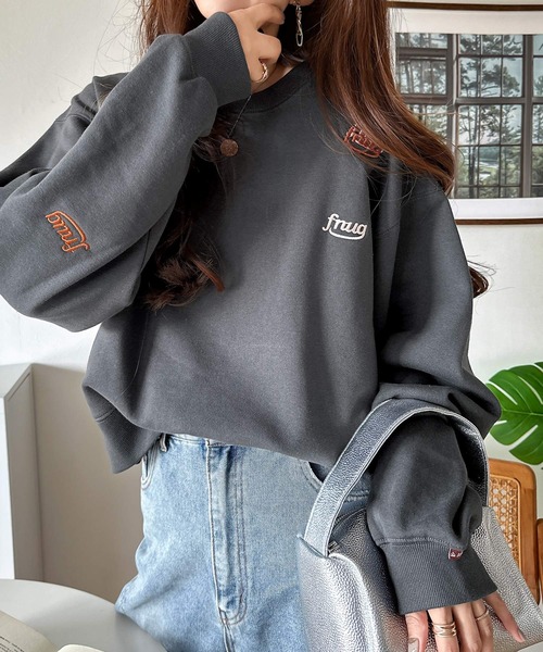 参考商品名:《JaVaジャバコラボ》着るだけで今っぽさ叶う。 ランダム 刺繍 クロップド丈 裏起毛 スウェット