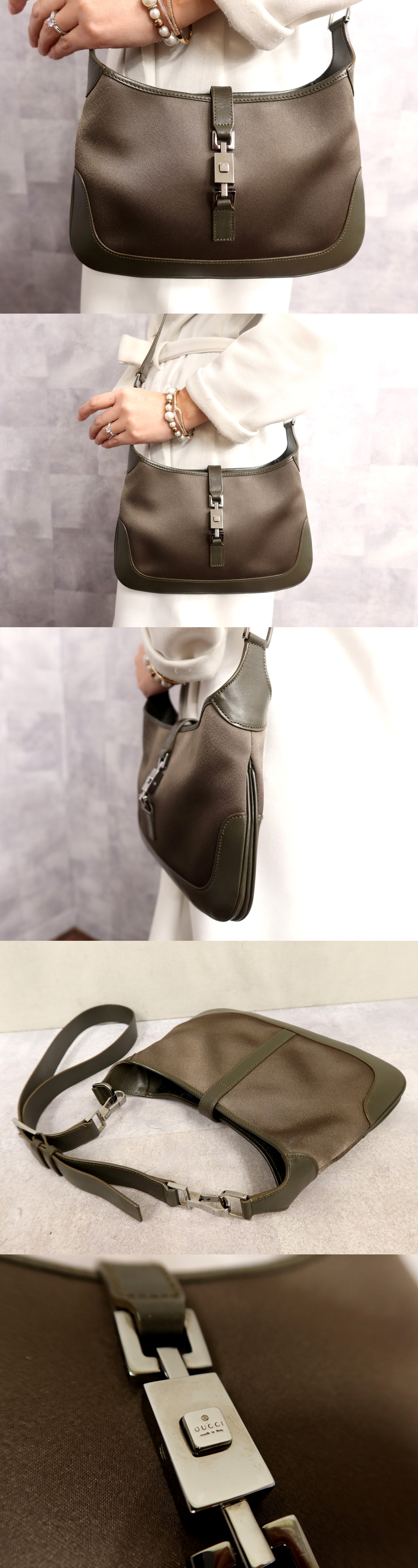 Product name: ●超美品●GUCCI グッチ●ジャッキー●ナイロン カーフ レザー 本革●ショルダー バッグ●モスグリーン●シルバー金具●肩掛け●Js66312
