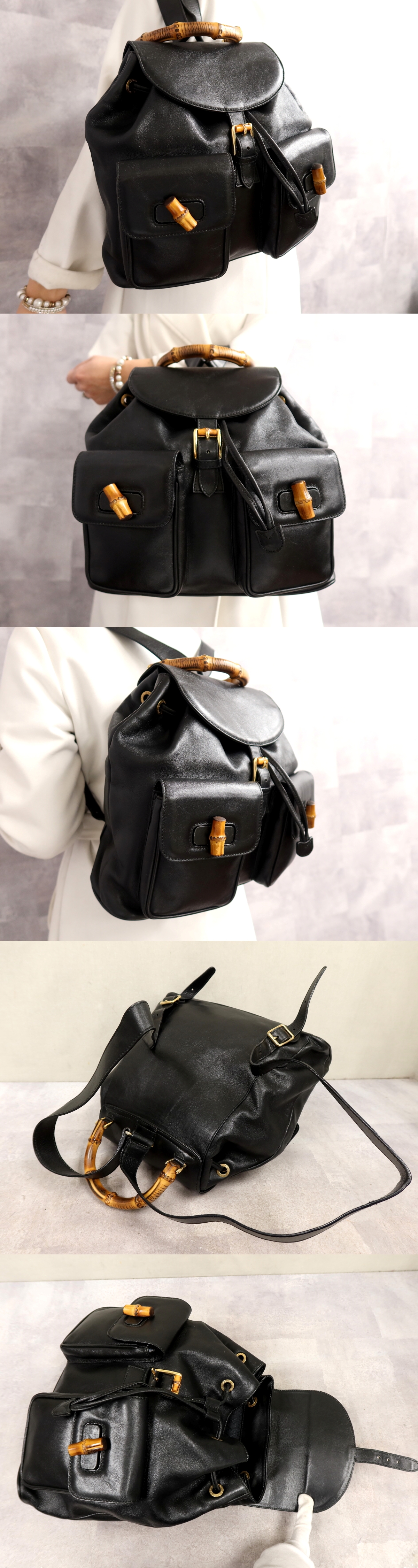 Store ●超美品●GUCCI グッチ●バンブー●カーフ レザー 本革●リュックサック●黒●ゴールド金具●イタリア製●B5 収納●書類 かばん●Js66182