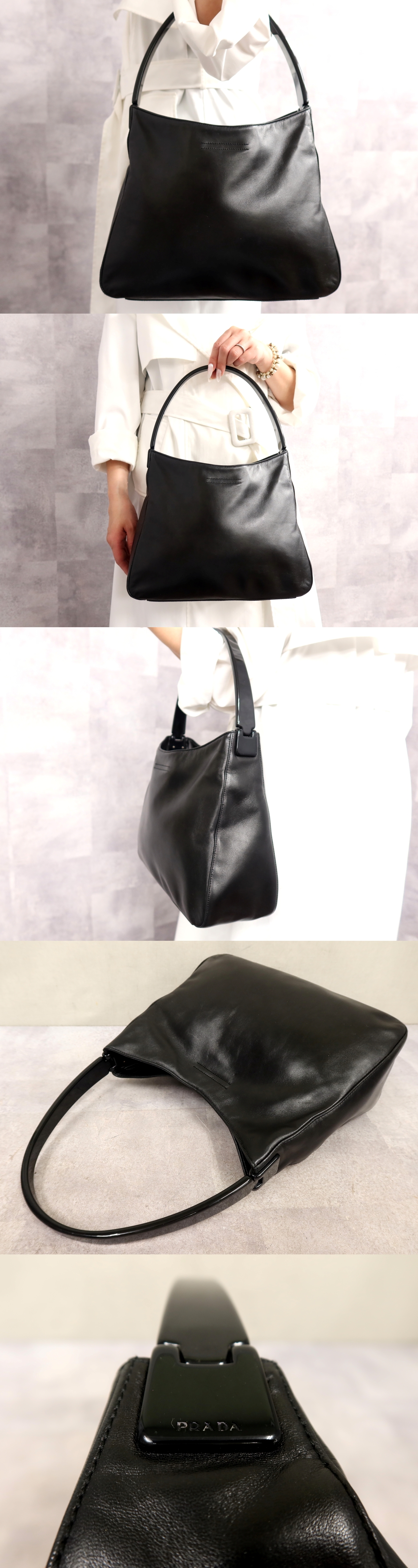 Product name: ●超美品●PRADA プラダ●プラスチックハンドル●ロゴ型押し●ラム レザー 本革●トート バッグ●黒●イタリア製●腕掛け●Js66976