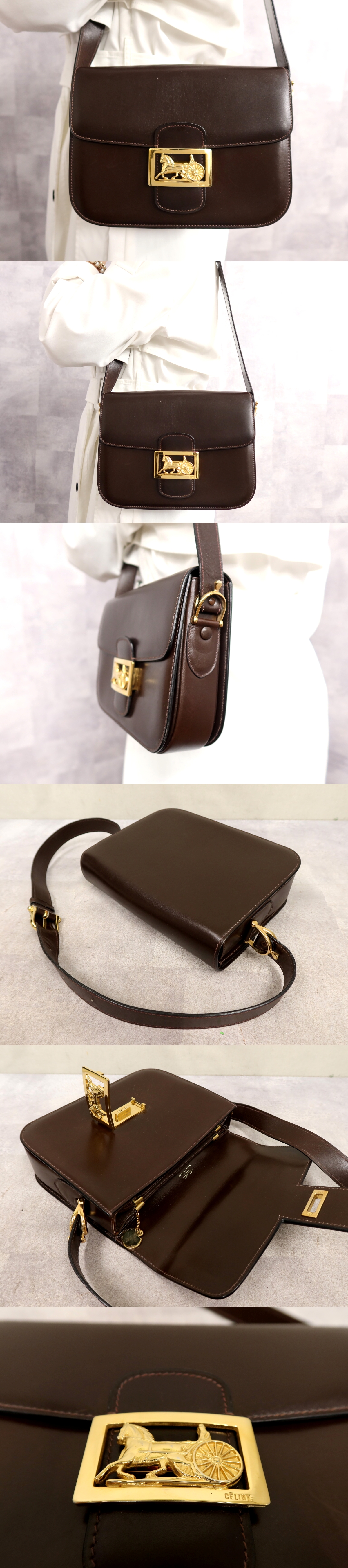 Product name: ●超美品●CELINE セリーヌ●馬車金具●カーフ レザー 本革●ショルダー バッグ●ダークブラウン●ゴールド金具●ヴィンテージ●Js67036