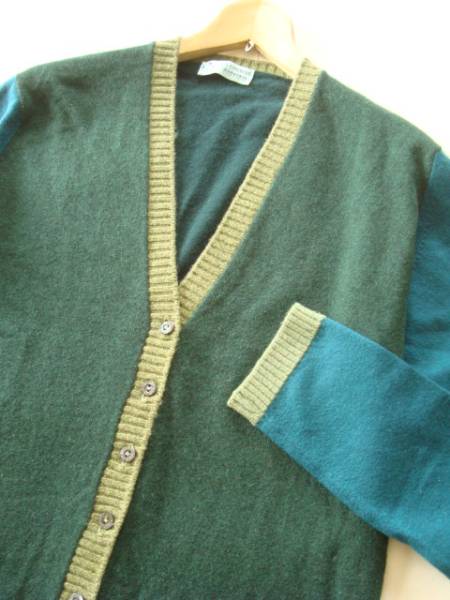 ・柔らかな上質カシミアを使いシンプルで定番デザインながら綺麗なシルエットに色合いを変えたグリーンカラーの切り替えがとてもお洒落なカーディガンです♪♪