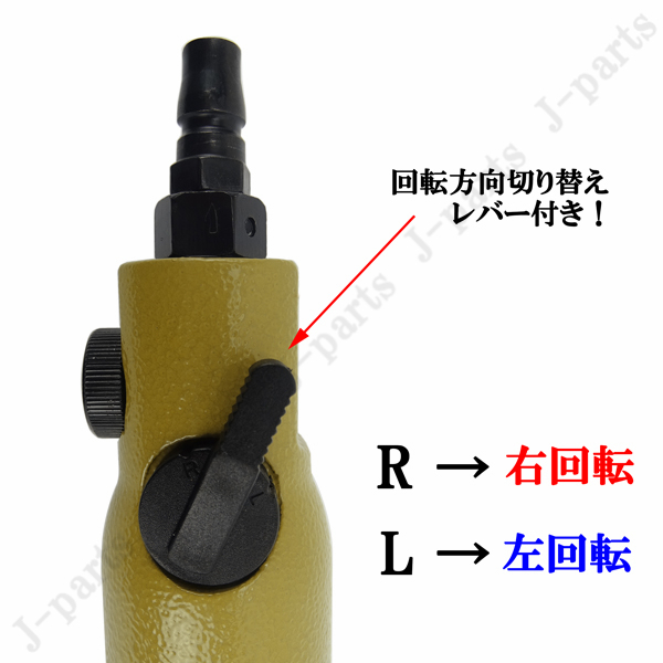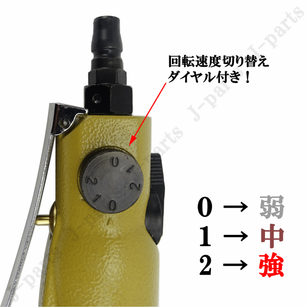 ●エアースクリュードライバー エアーツール 多機能 回転調整式 ハンディタイプ 自動車整備点検 建築大工 組み立て作業 プラスビット10本付き