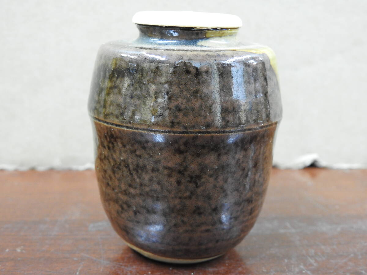 膳所焼 夜鶴写茶入 久田箱書 共箱 OY486