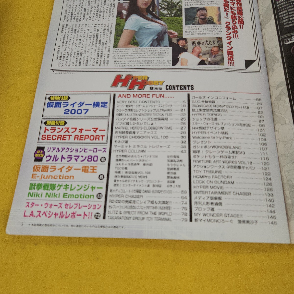 G03-101 ハイパーホビー 2007年8月号 藤岡弘が語る/仮面ライダー電王/獣拳戦隊ゲキレンジャー他 徳間書店 付録なし。寄れ角傷あり。