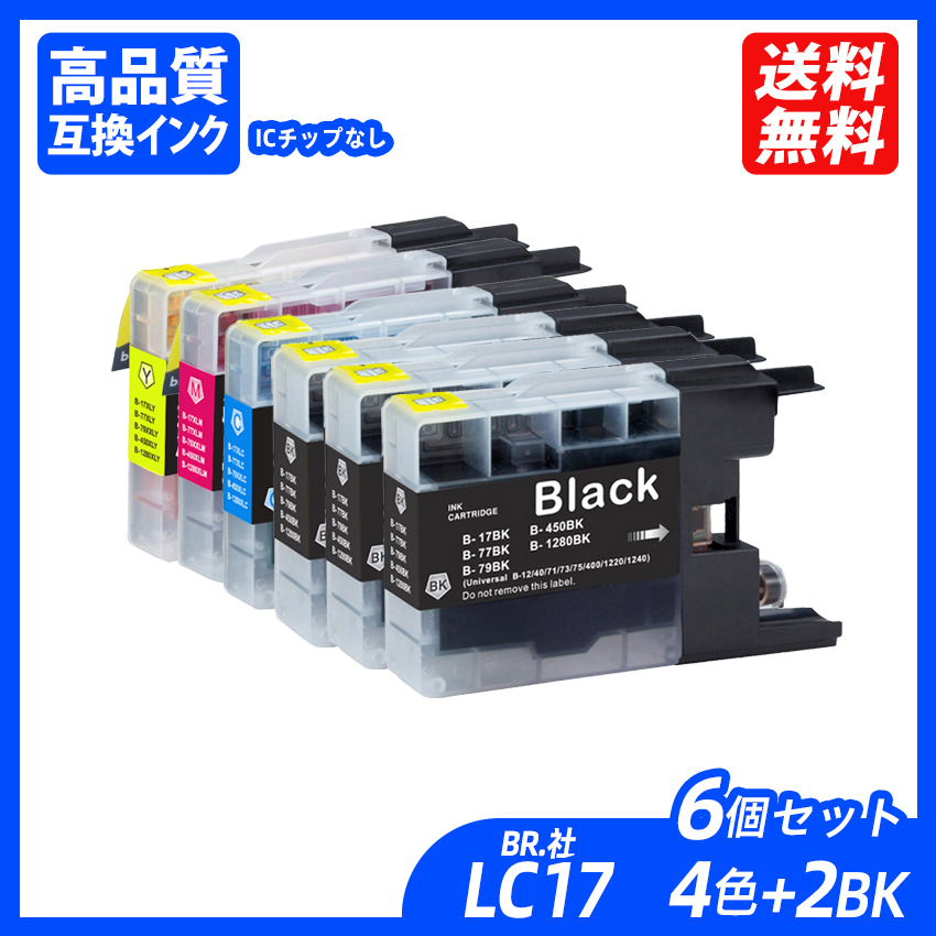 LC17-4PK+LC17BK×2 お得な4色パック+ブラック2本 計6本セット 大容量 BR社 プリンター用互換インク ICチップなし LC17BK LC17C ;B11709;