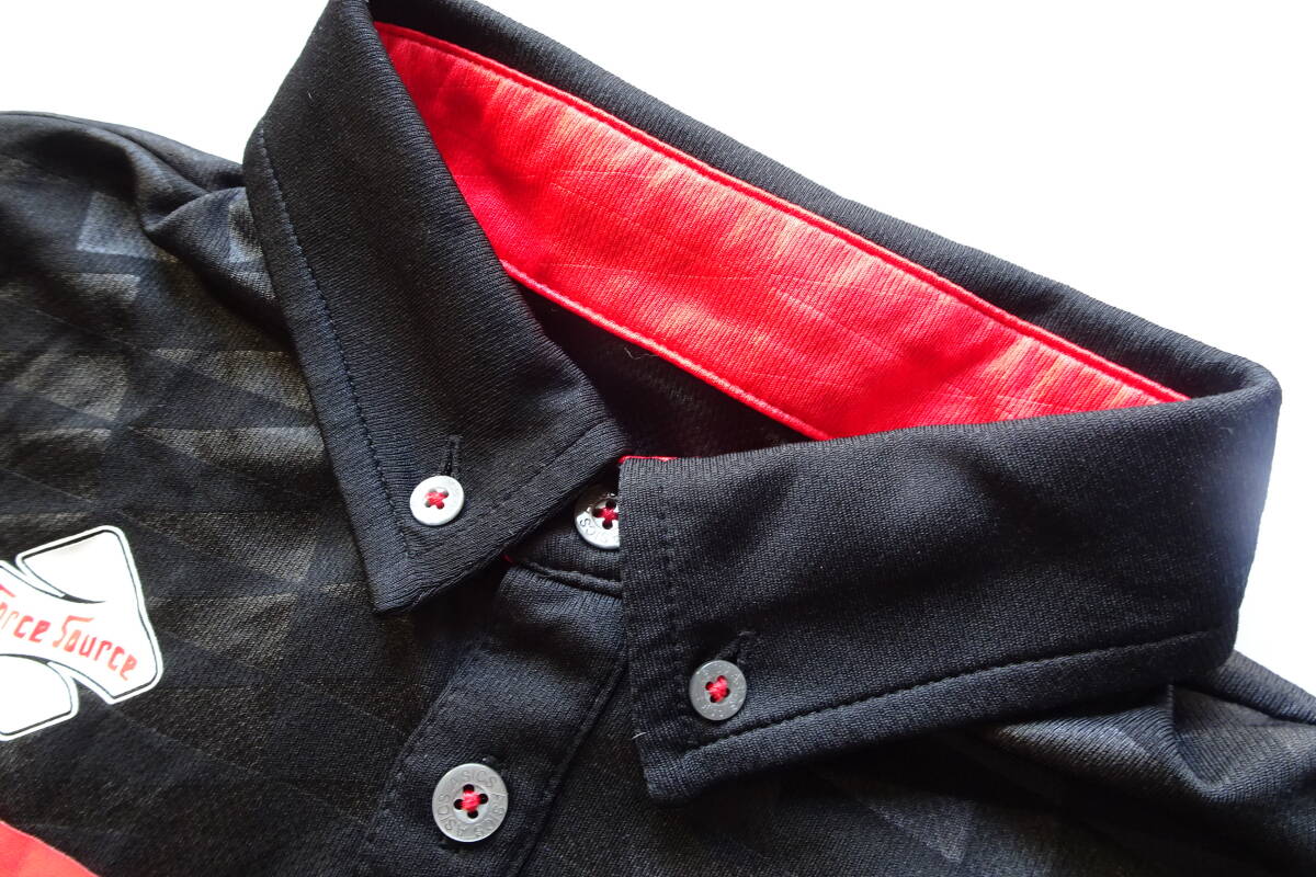 asics/アシックス/A77/半袖ボタンダウンシャツ/速乾性素材/三角形グラフィック柄プリント/ロゴプリント/黒/ブラック/SSサイズ(9/17R)