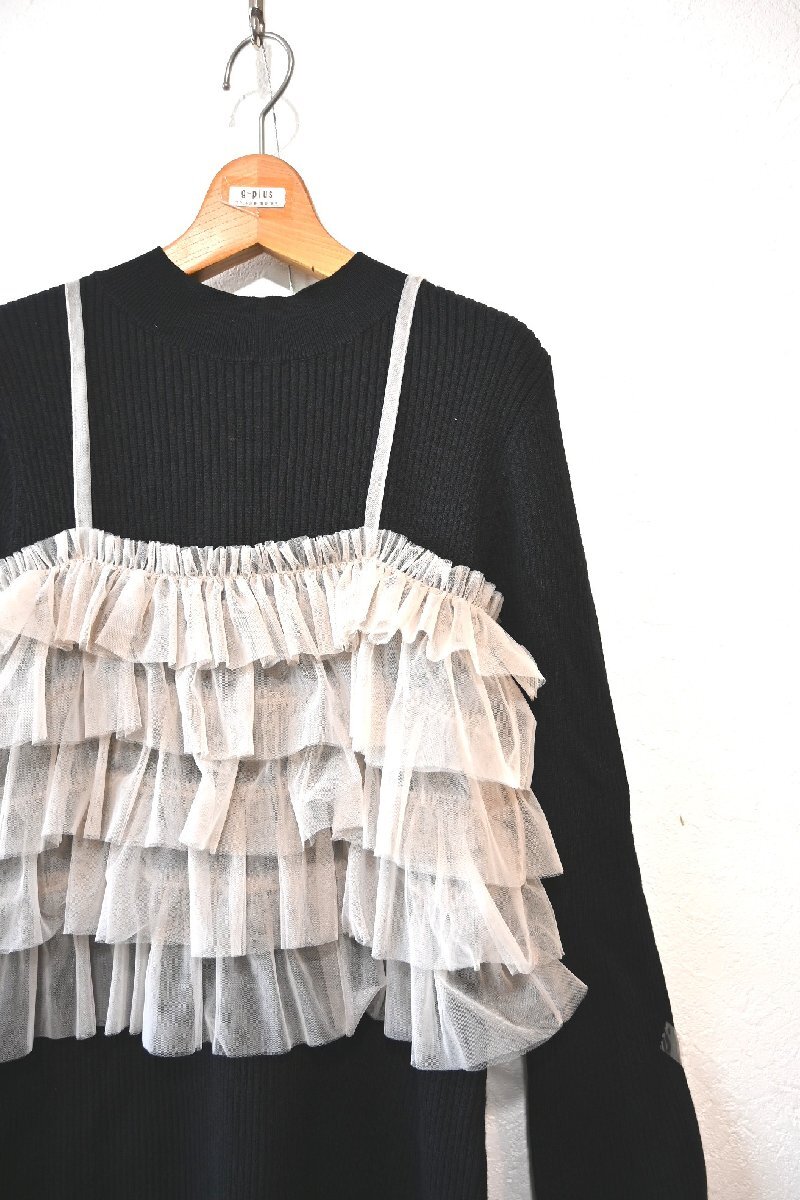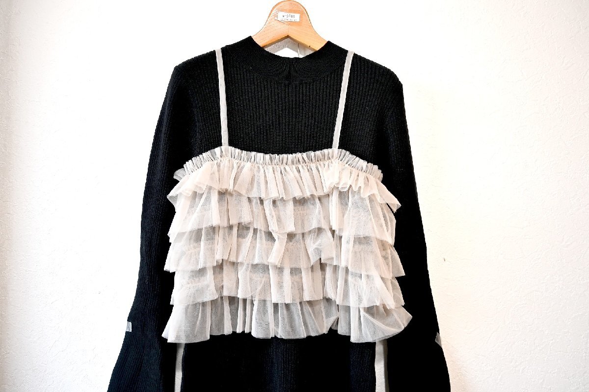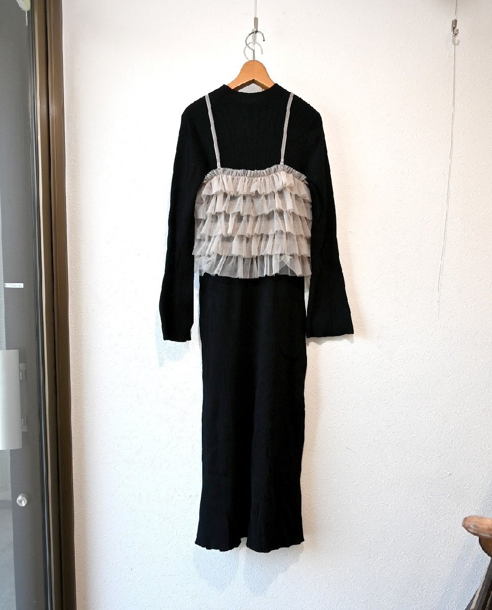 華やかなチュールビスチェがポイントのニットワンピースになります。