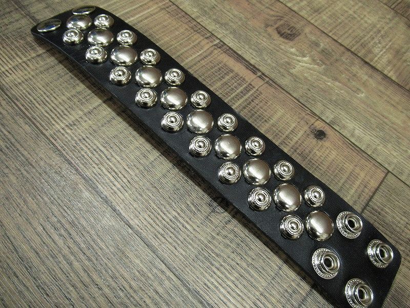 Product name: 送無 使用感少ない美品 NEON Leather Garment ネオン レザーガーメント 丸鋲 3連スタッズ 5mm厚 肉厚 レザー リストバンド ブレスレット 黒