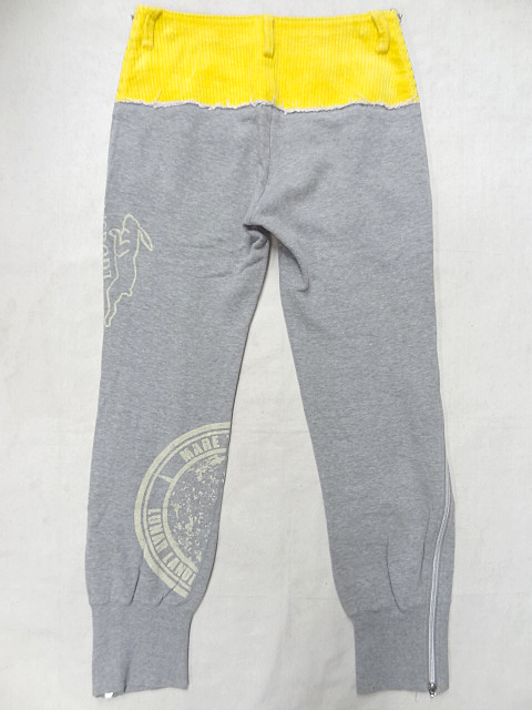 Product name: ISSEY MIYAKE イッセイミヤケ レア 変形 デザイン 2トーン 太畝 イエロー コーデュロイ グレー スウェット パンツ 総柄 プリント ジョガー