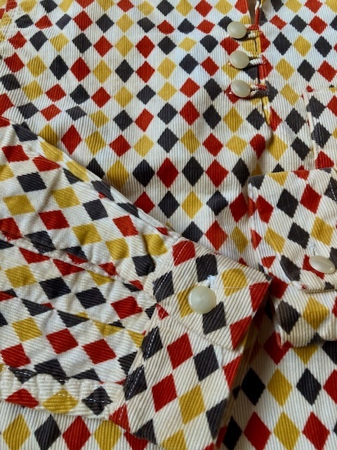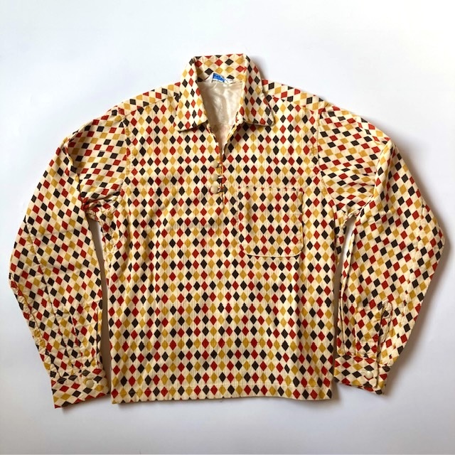 Product name: ビンテージ 50s Pilgrim ダイヤ柄 プリントコーデュロイ プルオーバーシャツ 検:プリネル プリントネル アトミック ロカビリー アーガイル