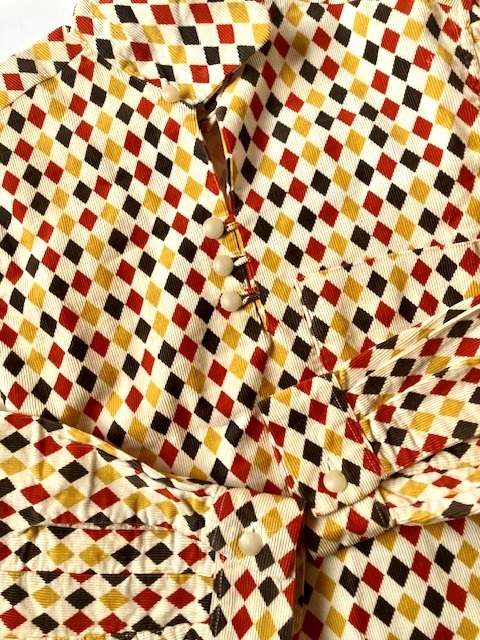 ビンテージ 50s Pilgrim ダイヤ柄 プリントコーデュロイ プルオーバーシャツ 検:プリネル プリントネル アトミック ロカビリー アーガイル
