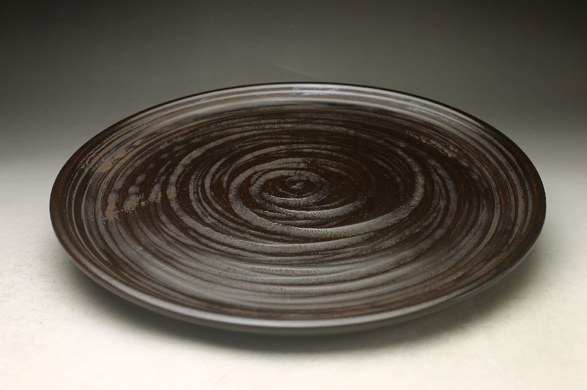 【余韻】 未使用品 象谷塗 8寸丸盆桟俵象谷 丸盆★径:24.3 栞 化粧箱<同梱可>