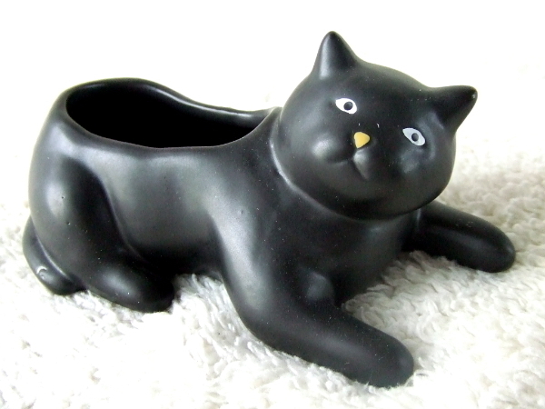 黒ネコデザインの磁器製プランターになります。 お好きな観葉植物を植えて可愛らしく飾ってみてください。